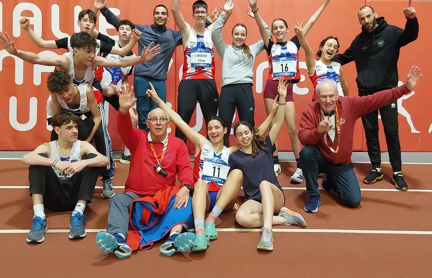 Chez les garçons nous avons Joshua Audouys-Pozdeev sur le 1000 avec 3’06’’18, 50h avec 8’’24 et longueur avec 4m80 ; Elie Carré à la hauteur avec 1m66 ; Titouan Chaussée avec 6’90 sur le 50, 3m00 à la perche et 10m84 au triple-saut ; Ethan Linderer au poids avec 9m83 ; Jule Luga sur 50 avec 6’’98 et au javelot avec 28m18 ; Nolan Morice sur le 50h avec 8’’16 et 5m56 à la longueur et Mathis Rimpôt au javelot avec 27m38